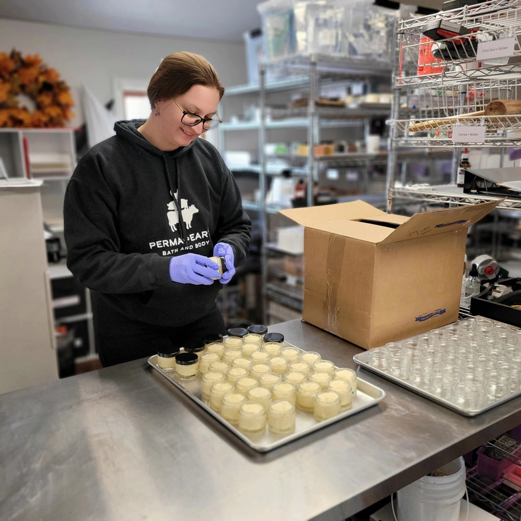 In 2011, I began making body care formulations for myself, my friends, family, and even pets! But eventually more people outside of my circle wanted the products. I took the leap to work full-time and make it official with the registration of Perma-Earth LLC in 2016. For two years my husband and I put in long hours and non-stop weekends together. We sold our products online straight from our kitchen. We also brought body care products and homestead goods to local farmer’s markets and special events across the states. We did this nearly every weekend for years, even bringing our first baby with us! But we didn’t make it work until I started a YouTube channel in 2018 and partnered with an affiliate. This led to the first big growth spurt and team additions!