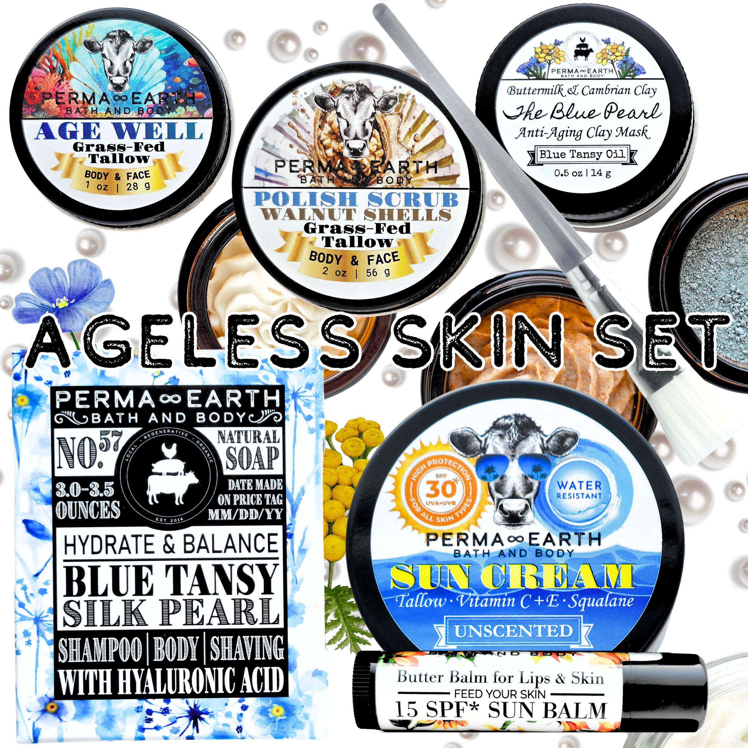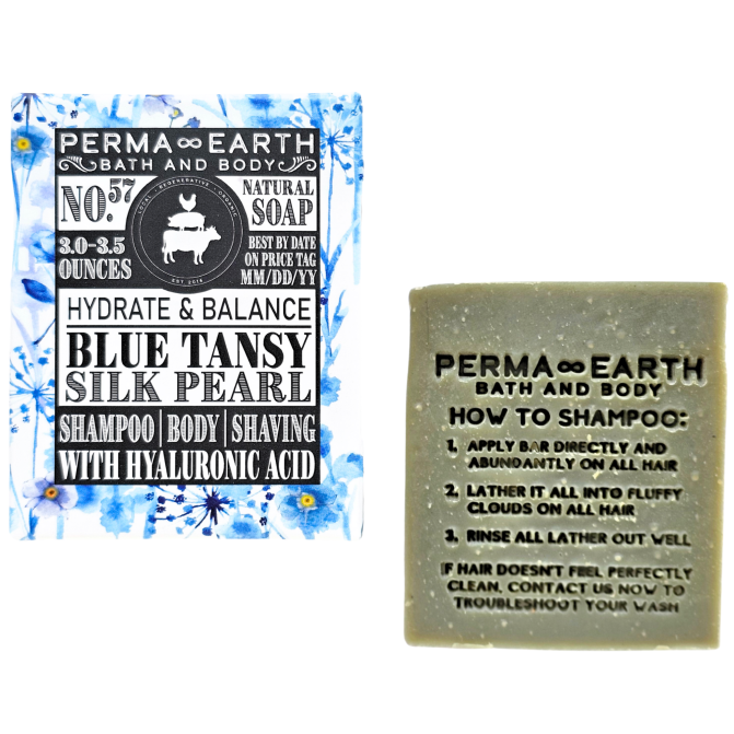 - STEP #1: 3.5 oz – BLUE TANSY & SILK PEARL soap for 1-3X daily cleansing and tightening