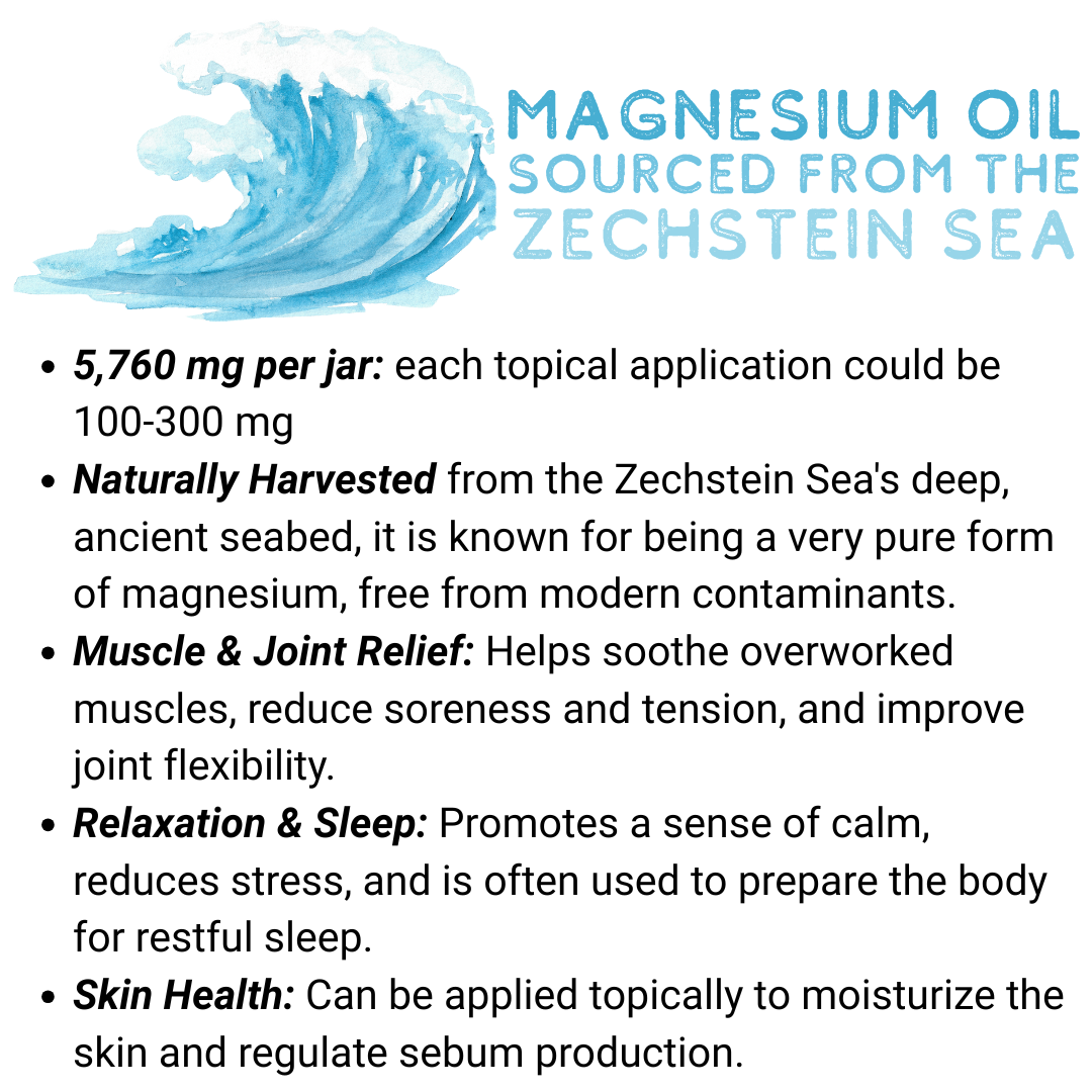 Naturally Harvested from the Zechstein Sea’s deep, ancient seabed, it is known for being a very pure form of magnesium, free from modern contaminants.