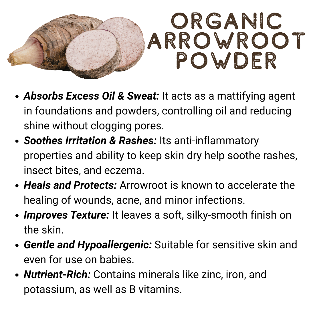 Heals and Protects: Arrowroot is known to accelerate the healing of wounds, acne, and minor infections.
