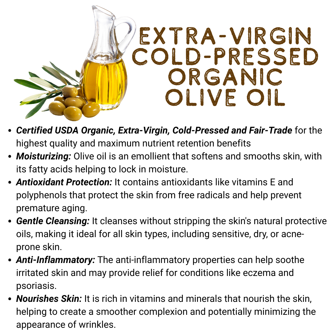 Moisturizing: Olive oil is an emollient that softens and smooths skin, with its fatty acids helping to lock in moisture.