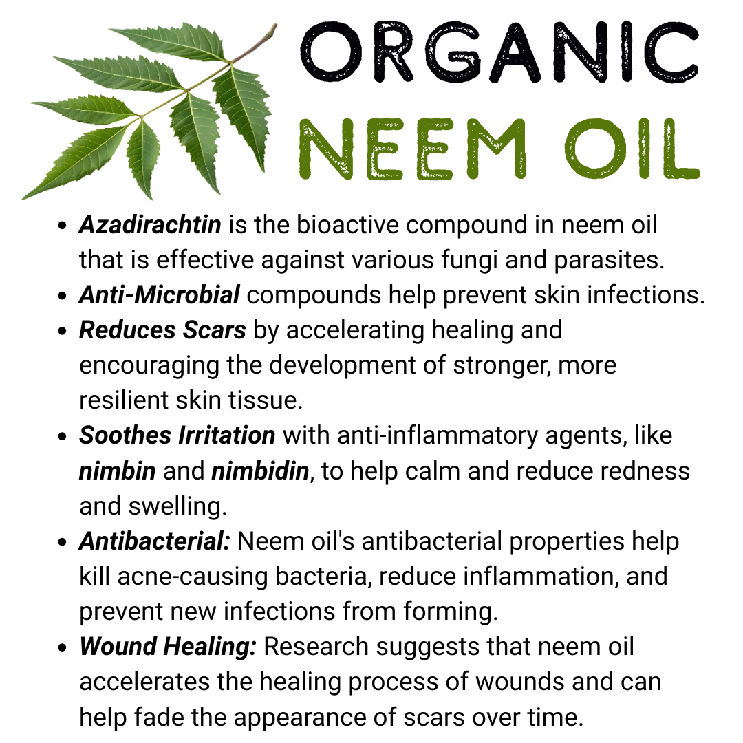 Wound Healing: Research suggests that neem oil accelerates the healing process of wounds and can help fade the appearance of scars over time.