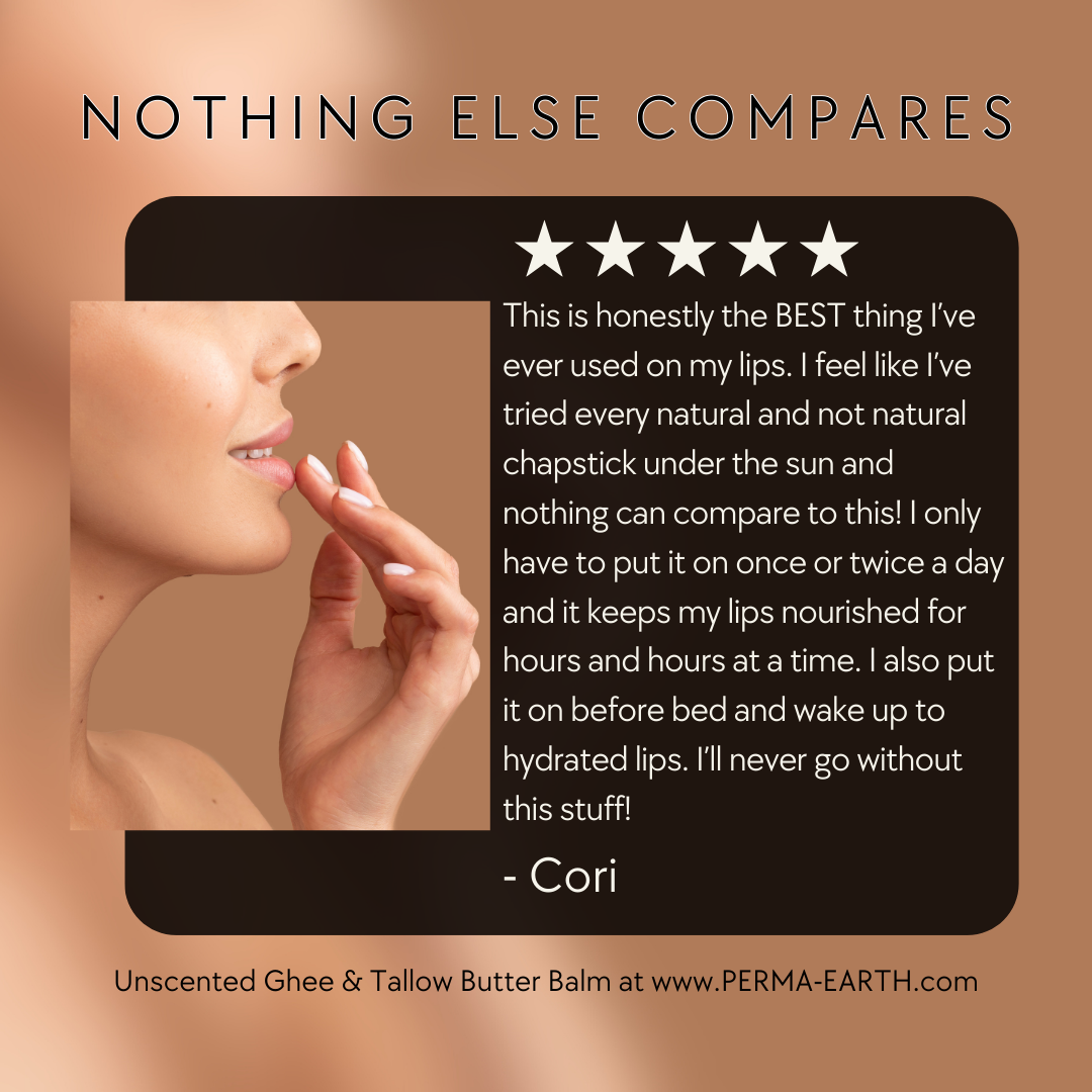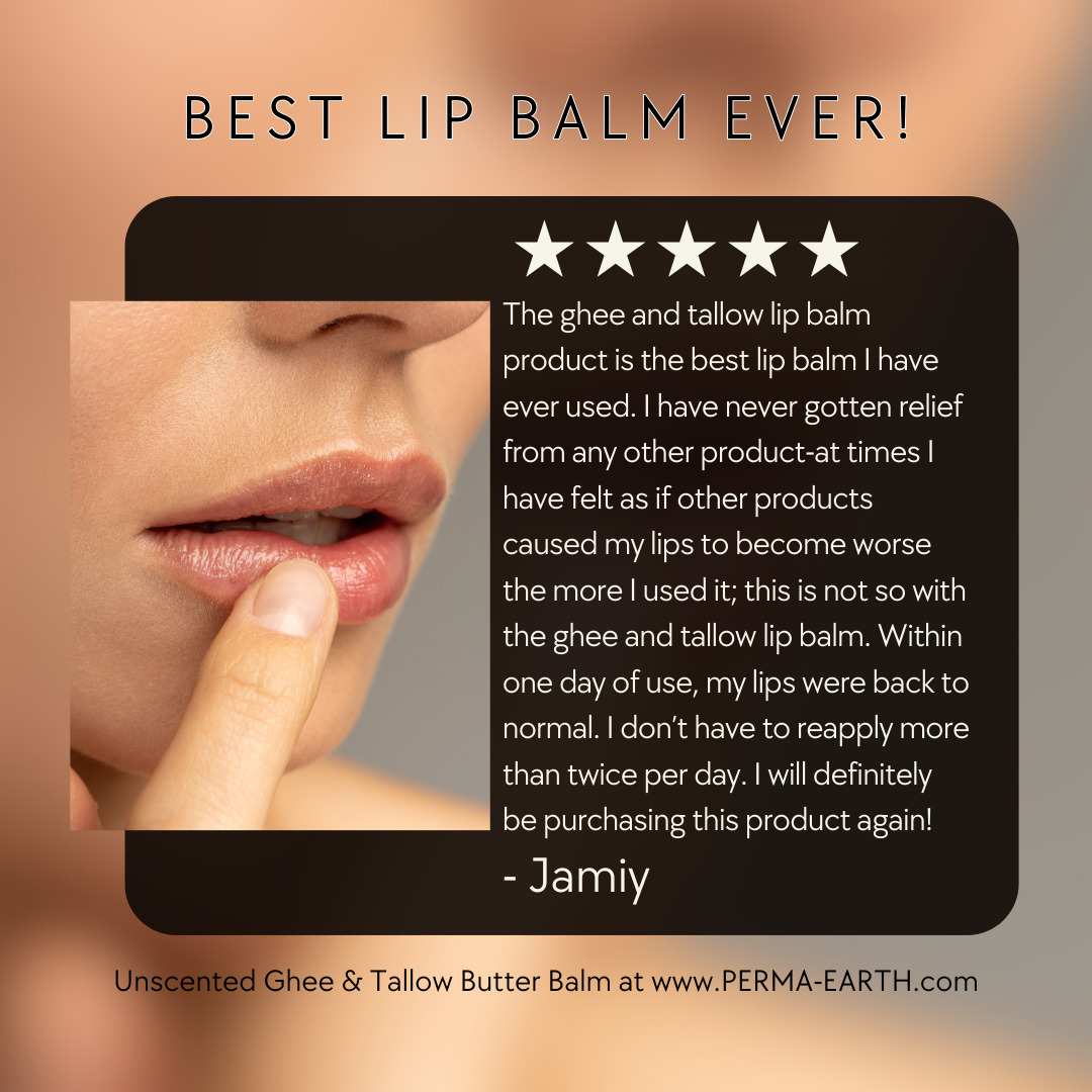 The ghee and tallow lip balm product is the best lip balm I have ever used. I have never gotten relief from any other product-at times I have felt as if other products caused my lips to become worse the more I used it; this is not so with the ghee and tallow lip balm. Within one day of use, my lips were back to normal. I don’t have to reapply more than twice per day. I will definitely be purchasing this product again!