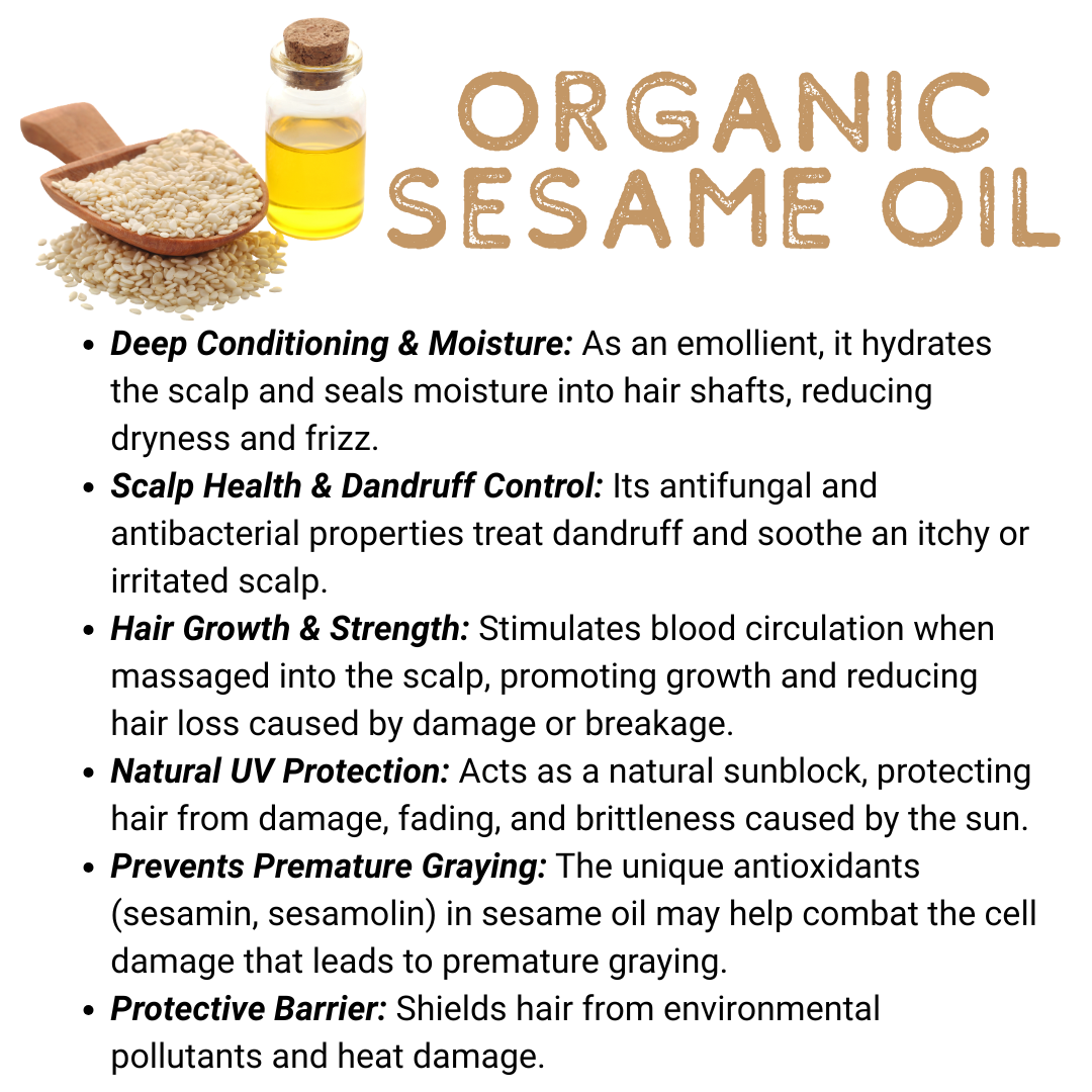 Prevents Premature Graying: The unique antioxidants (sesamin, sesamolin) in sesame oil may help combat the cell damage that leads to premature graying.